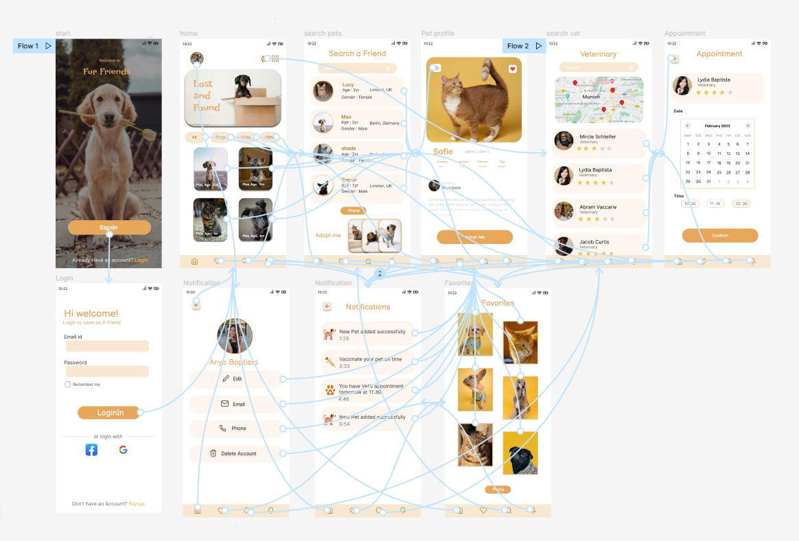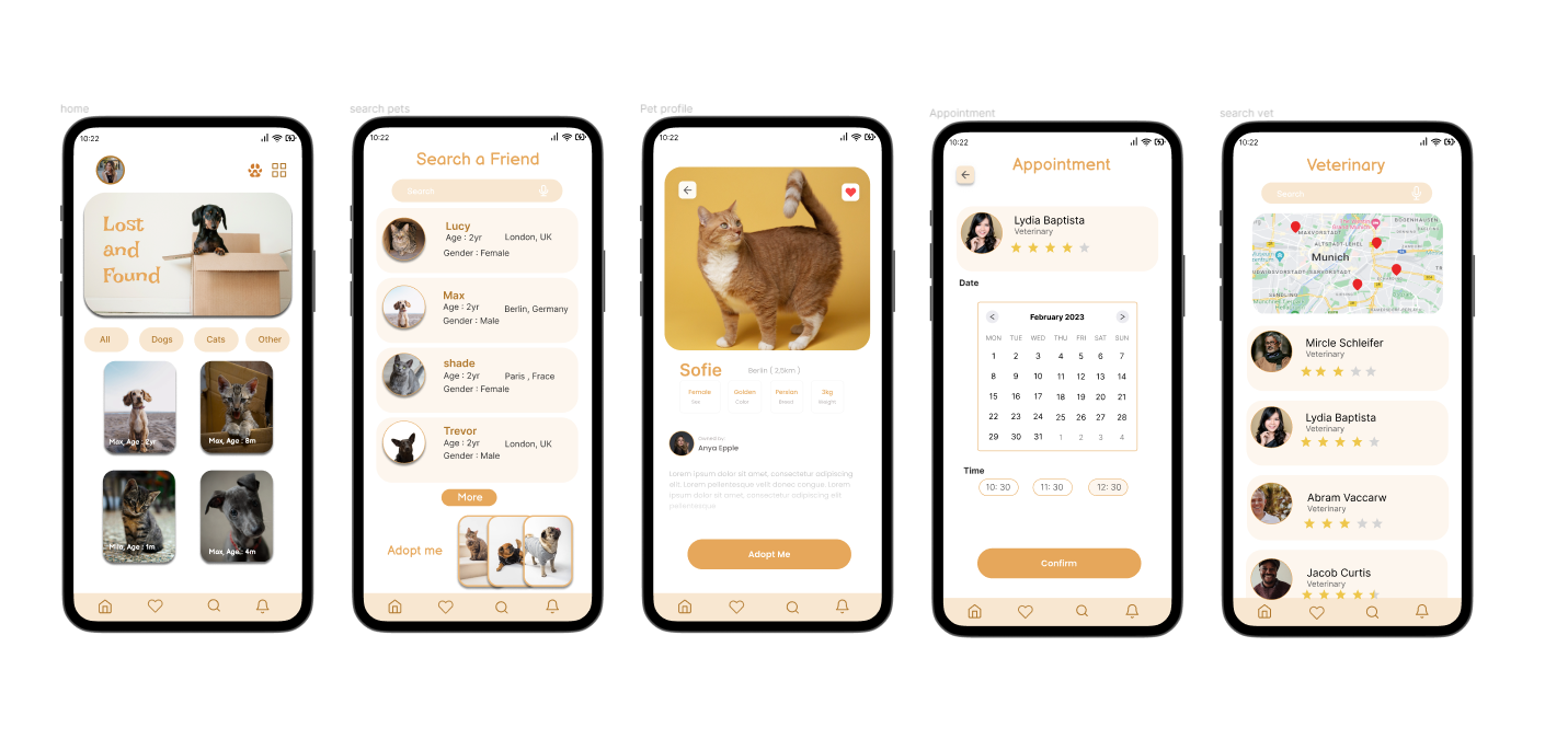 The final high-fidelity prototype presented clear user flows on how the users can adopt pet and also can look for veterinary doctors nearby.