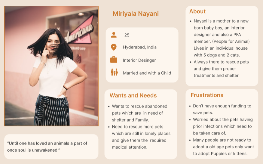 I conducted interviews and created empathy maps to understand the users that I am designing the app for and their needs. A group who are identified as pet owners since very long who like to know more about the rescued pets and their needs.