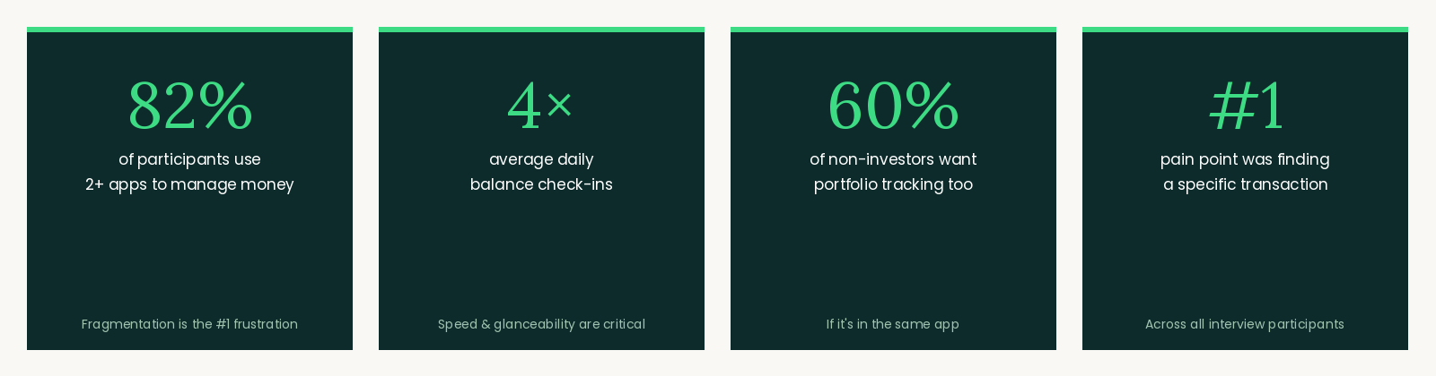 01 · Fragmented data across 3+ apps creates anxiety and blind spots in financial health